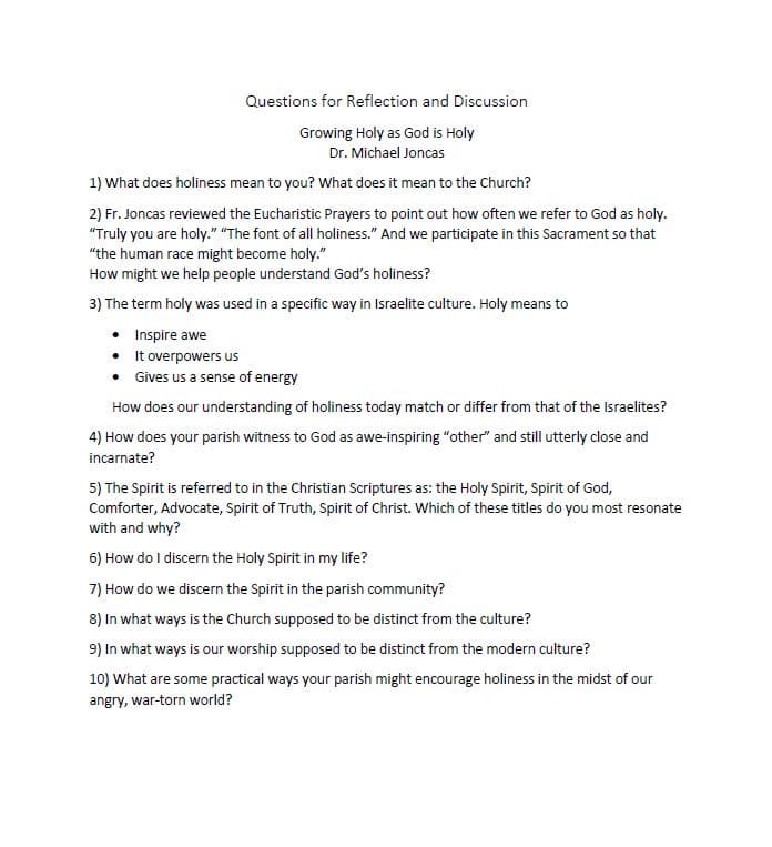 Fr. Michael Joncas – Questions for Reflection and Discussion – Spring Formation Day 2019
